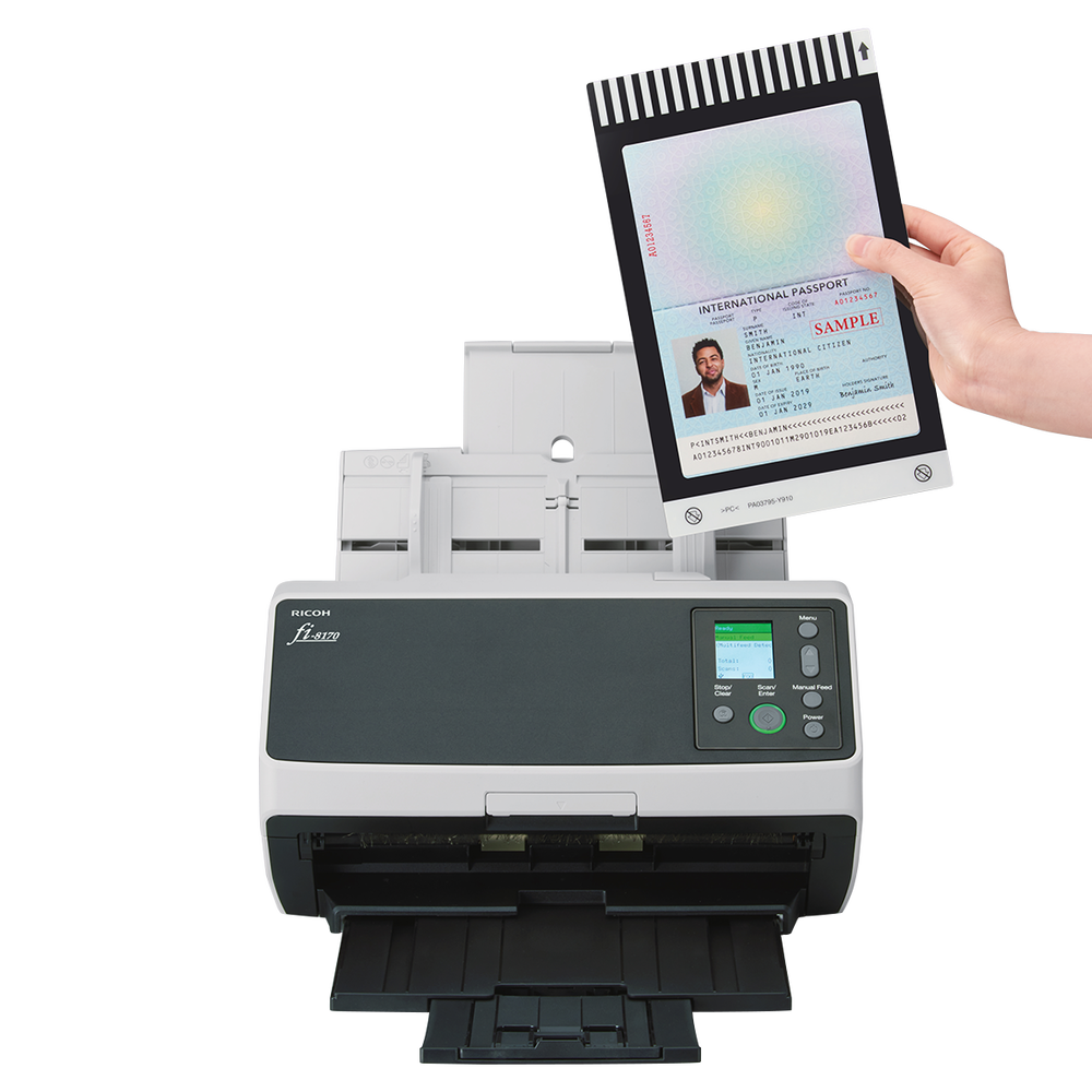 Scanarea pașaportului: – este necesar transportor (Pașaport conform ISO/IEC 7810 ID-3 cu o grosime de 7 mm sau mai puțin când este deschis, inclusiv foaia de transport)